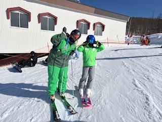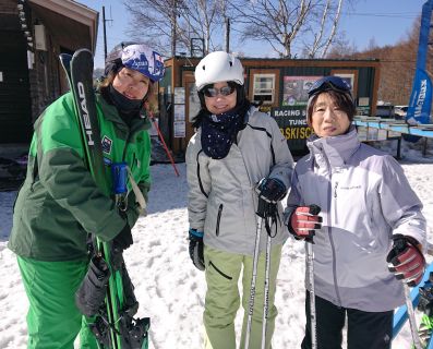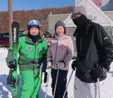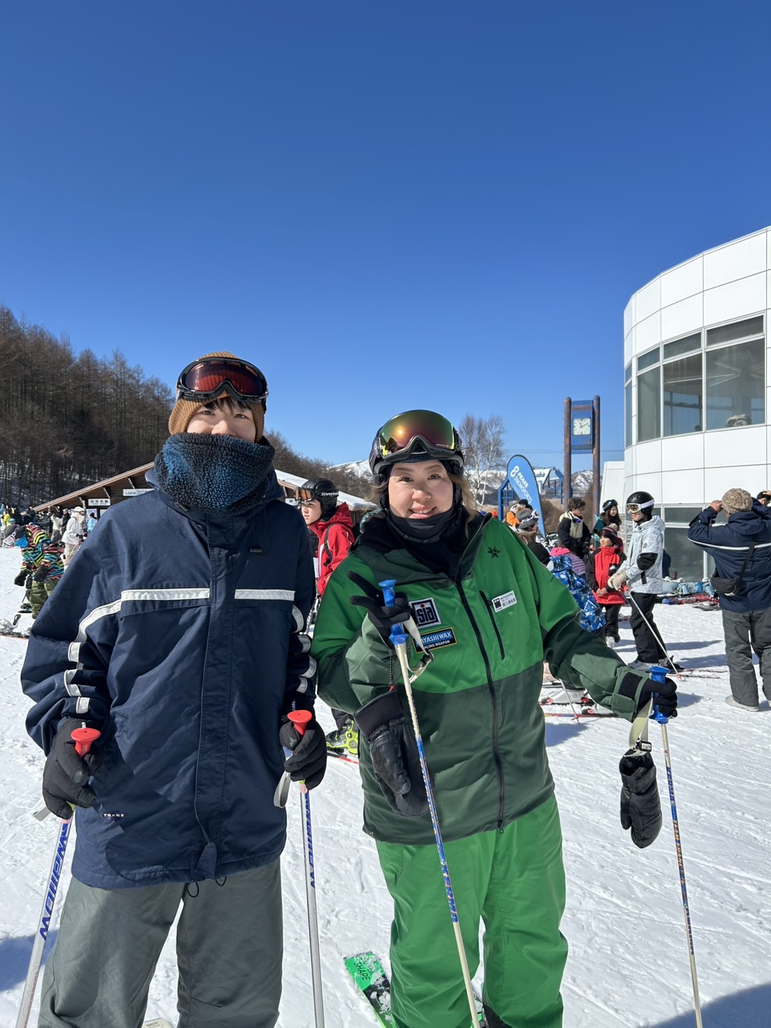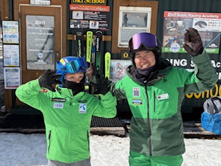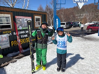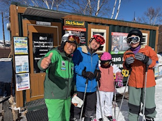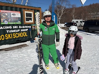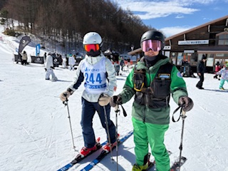 連休中日でゲレンデ、とても混んでいました。A君は昨年ご家族が咲奈コーチのレッスンを受講してくださいましたね!