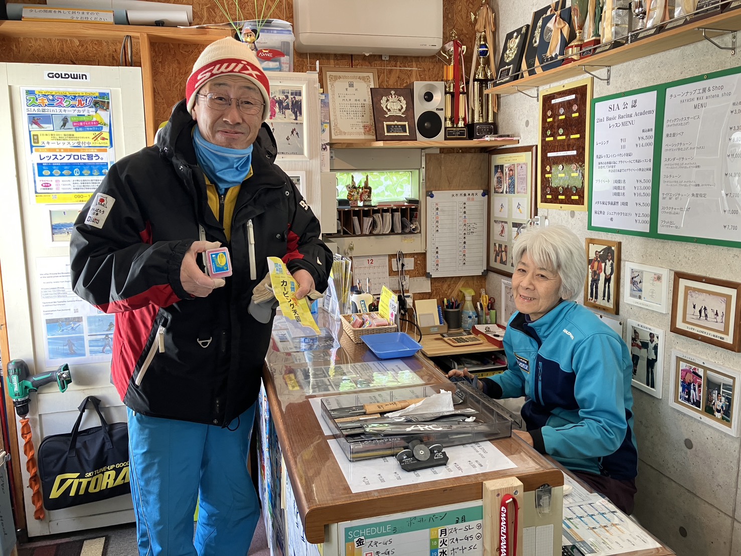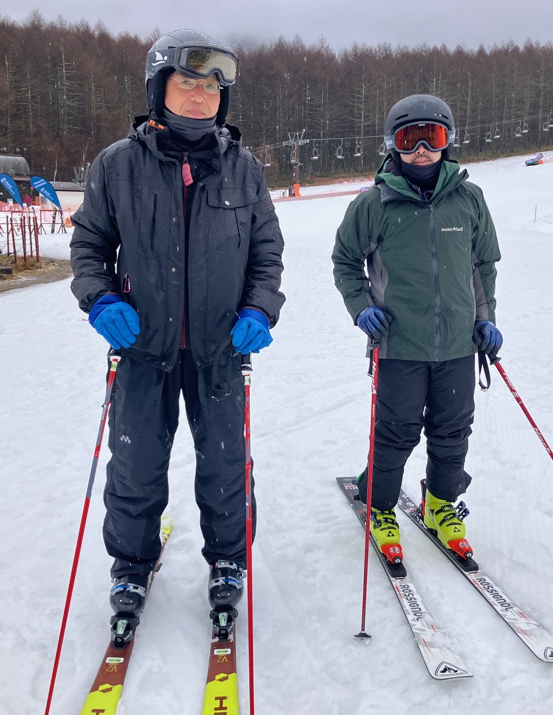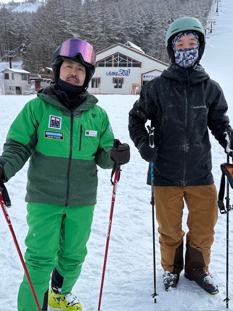 12月9日ご入校のSさんと校長。数年ぶりのスキーとの事で、レッスンご希望です。自主練と並行して、またお越しになるとの事。お待ちしています。